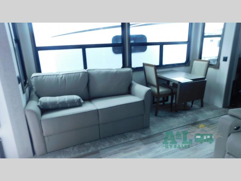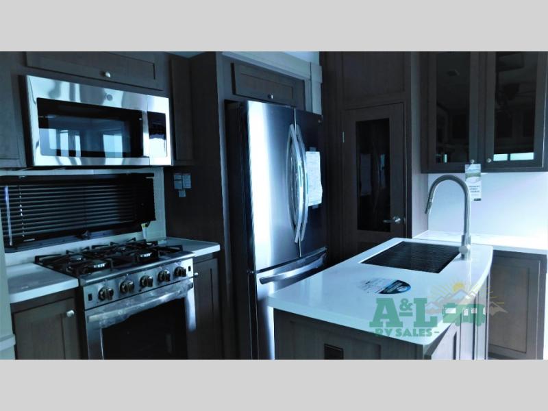 If you love to cook big meals for your crew, this Palomino Columbus 384RK fifth wheel from A&L RV Sales is the perfect RV for your adventures. The rear kitchen features an Insignia 24" residential oven with a four-burner stove that makes it easy to make meals for your entire crew. This floorplan has a bath and a half that will give you plenty of privacy and allows your guests to avoid the campground bathhouse.