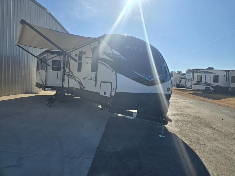 Discover the 2023 Dutchmen Atlas 3302RL, a remarkable travel trailer designed for adventure and comfort. With a spacious layout that sleeps 4 and features 3 slides, this RV offers ample living space for your travels. Weighing in at a dry weight of 8,391 lbs and a GVWR of 11,000 lbs, it provides easy towing and maneuverability. Enjoy modern conveniences with a 15,000 BTU air conditioning system, ensuring comfort in any climate. The private bedroom and standard shower enhance your home-away-from-home experience. Ideal for weekend getaways or extended journeys, the Dutchmen Atlas stands out in reliability and performance. Schedule your tour today!