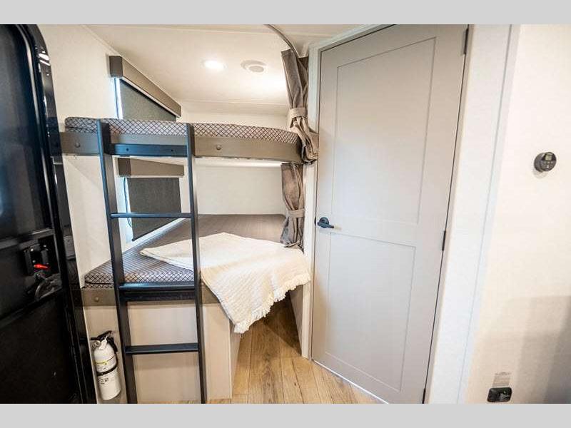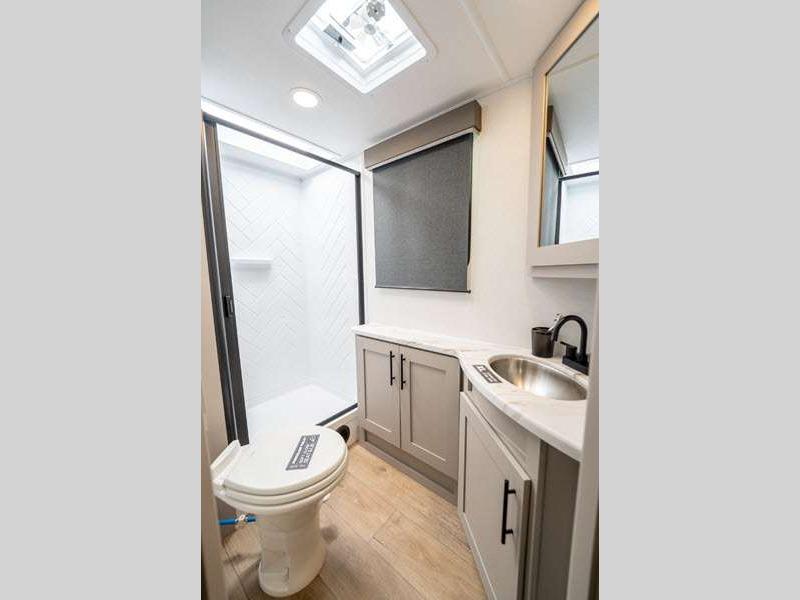 Exterior highlights include Step Above steps on all doors, Goodyear Endurance tires, exterior awning controls, and more. Inside, you'll enjoy fully functional oversized atrium windows, soft closet hidden hinges, and no carpet to make cleaning up easier than ever.