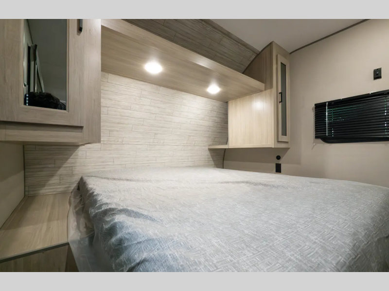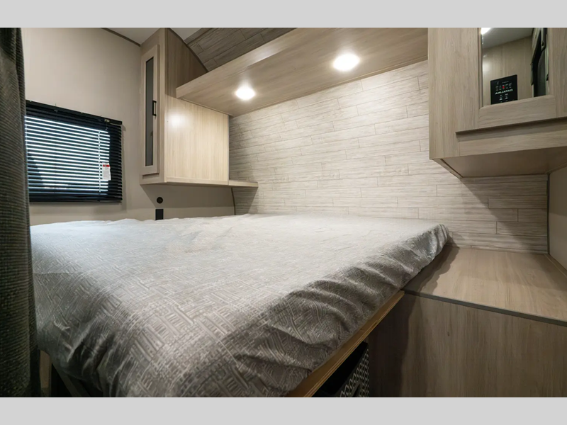Sleeps 2 Slides 1 Length 25 ft 11 in Ext Width 8 ft Ext Height 11 ft 1 in Int Height 6 ft 9 in Hitch Weight 606 lbs GVWR 7606 lbs Dry Weight 5341 lbs Cargo Capacity 2265 lbs Fresh Water Capacity 44 gals Grey Water Capacity 40 gals Black Water Capacity 30 gals Furnace BTU 35000 btu Available Beds Queen Refrigerator Type 12V GE Stainless Refrigerator Size 10.7 cu ft Cooktop Burners 3 Shower Size 36" x 30" Number of Awnings 1 LP Tank Capacity 20 lbs Water Heater Type Tankless On Demand AC BTU 13500 btu Awning Info 18' Electric w/Multicolored LED Light Strip and Remote Axle Count 2 Number of LP Tanks 2 Shower Type Standard Electrical Service 30 amp Similar Floorplans