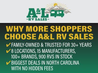 A & L RV Sales is not responsible for any misprints, typos, or errors found in our website pages. Any price listed excludes sales tax, registration tags, $999 Doc, and delivery. Manufacturer pictures, specifications, and features may be used in place of actual units on our lot. Please contact us at any of our 8 locations for availability as our inventory changes rapidly. All calculated payments are an estimate only and do not constitute a commitment that financing or a specific interest rate or term is available. Estimated payments are based on 15% down and 8.99% interest for new units and 9.99% interest for pre-owned units. Calculated payments do not include tax, tags, and title.