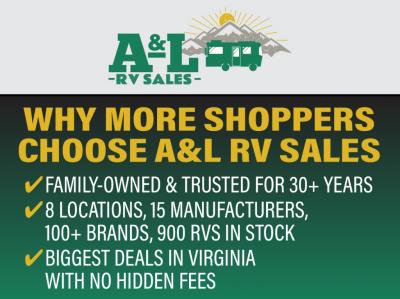 A & L RV Sales is not responsible for any misprints, typos, or errors found in our website pages. Any price listed excludes sales tax, registration tags, $999 Doc, and delivery. Manufacturer pictures, specifications, and features may be used in place of actual units on our lot. Please contact us at any of our 8 locations for availability as our inventory changes rapidly. All calculated payments are an estimate only and do not constitute a commitment that financing or a specific interest rate or term is available.  Estimated payments are based on 15% down and 8.99% interest for new units and 9.99% interest for pre-owned units.  Calculated payments do not include tax, tags, and title.
