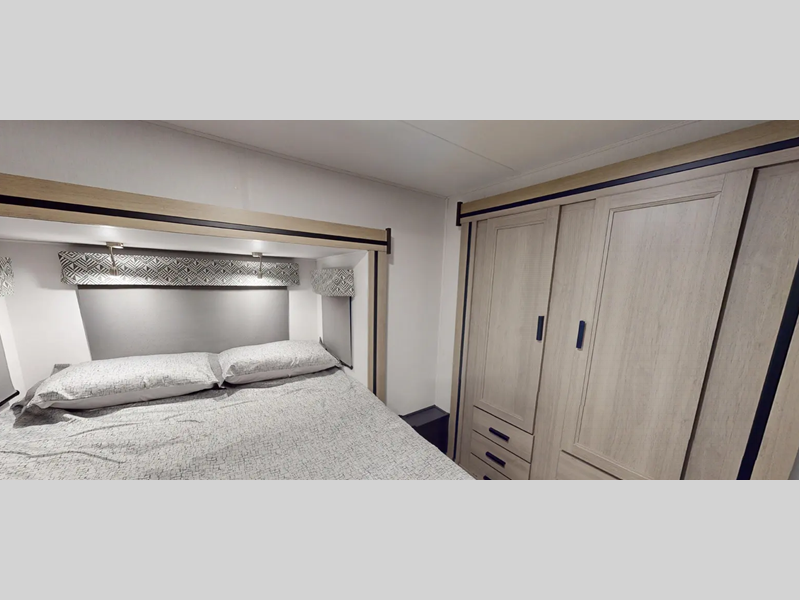 Sleeps 6 Slides 1 Length 31 ft 11 in Ext Width 8 ft 5 in Ext Height 11 ft 3 in Interior Color Marble, Fieldstone Exterior Color Standard Graphics. Full Body Paint; Sapphire, Scarlet Hitch Weight 7500 lbs GVWR 14500 lbs Fresh Water Capacity 44 gals Grey Water Capacity 39 gals Black Water Capacity 39 gals Furnace BTU 30000 btu Generator 4.0KW Gas Fuel Type Gas Chassis Ford Fuel Capacity 55 gals Wheelbase 220 in Number Of Bunks 1 Available Beds Queen Refrigerator Type 12V Refrigerator Size 10.7 cu ft Convection Cooking Yes Cooktop Burners 3 Shower Size 24" x 36" Number of Awnings 1 Axle Weight Front 5000 lbs Axle Weight Rear 9600 lbs LP Tank Capacity 41 lbs. Water Heater Capacity 6 gal Water Heater Type DSI Gas/Electric AC BTU 13500 btu TV Info BR 12V, Bunk 12V LED Awning Info 18' Power w/ LED Lights Gross Combined Weight 22000 lbs Shower Type Tub/Shower Combo Electrical Service 30 amp Similar Floorplans