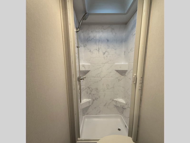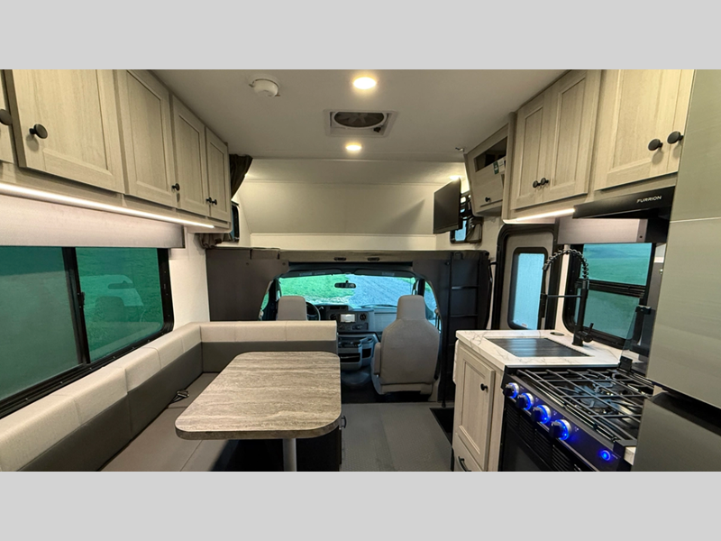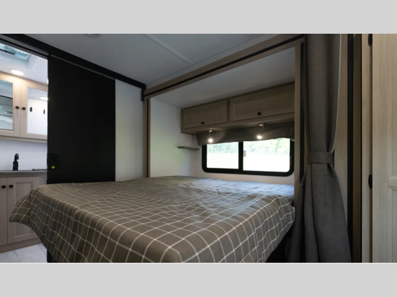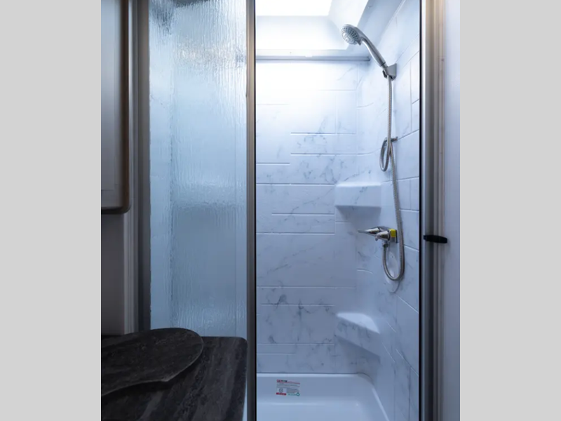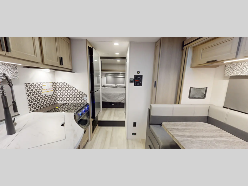 Each model includes an EZ Ryde upgraded suspension system for a smooth drive each time, plus a 10" touch screen and backup camera/side view cameras with a 3-way monitor for easy maneuvering at the campground. The 2" aluminum framed laminated sidewalls and SuperLite composite substrate provide a strong motorhome made to last, and the block foam insulation means you can camp year around. Head inside to find black out roller shades, soft touch self-closing drawer guides, an oxygen-infused shower head, plus a 12V USB charging station to keep your electronics charged and ready to go.