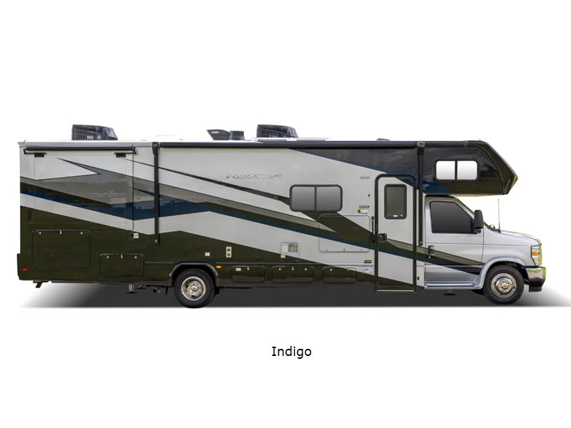 Sleeps 6 Slides 1 Length 31 ft 11 in Ext Width 8 ft 5 in Ext Height 11 ft 3 in Exterior Color Standard Graphics. Moonstone, Indigo Options GVWR 14500 lbs Fresh Water Capacity 44 gals Grey Water Capacity 39 gals Black Water Capacity 39 gals Furnace BTU 30000 btu Generator 4.0KW Gas Fuel Type Gas Chassis Ford Fuel Capacity 55 gals Wheelbase 220 in Number Of Bunks 1 Available Beds Queen Refrigerator Type 12V Refrigerator Size 10.7 cu ft Convection Cooking Yes Cooktop Burners 3 Shower Size 24" x 36" Number of Awnings 1 Axle Weight Front 5000 lbs Axle Weight Rear 9600 lbs LP Tank Capacity 41 lbs. Water Heater Capacity 6 gal Water Heater Type DSI Gas/Electric AC BTU 13500 btu TV Info BR 12V, Bunk 12V LED Awning Info 18' Power w/ LED Lights Gross Combined Weight 22000 lbs Shower Type Tub/Shower Combo Electrical Service 30 amp Similar Floorplans