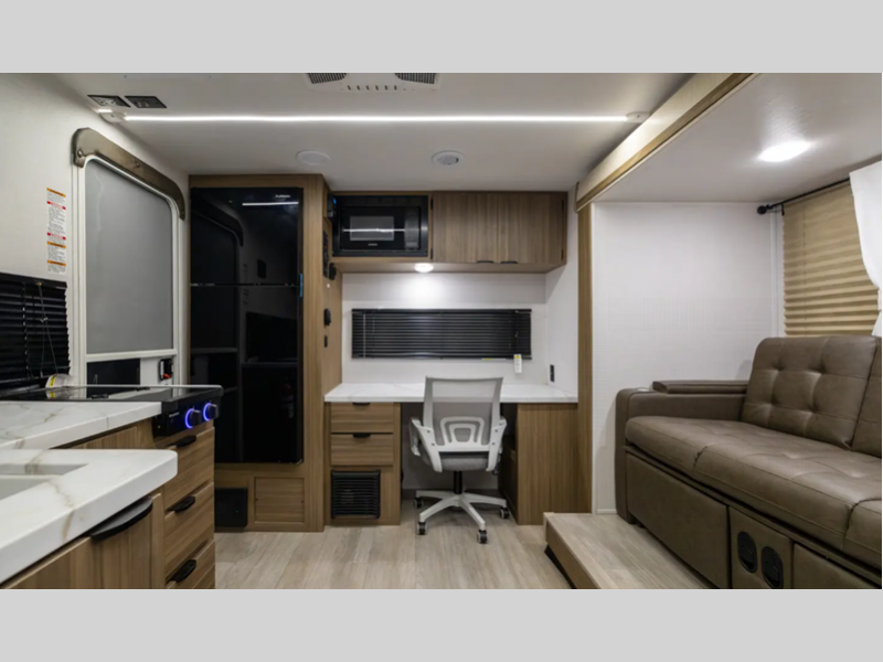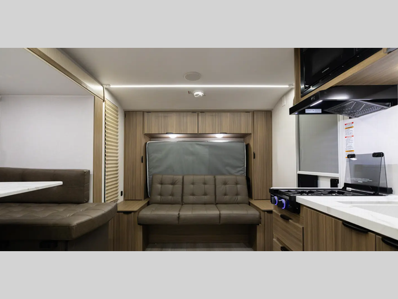 Sleeps 3 Length 21 ft 2 in Ext Width 7 ft 6 in Ext Height 10 ft 2 in Hitch Weight 350 lbs Dry Weight 3084 lbs Cargo Capacity 766 lbs Fresh Water Capacity 43 gals Grey Water Capacity 30 gals Black Water Capacity 30 gals Furnace BTU 20000 btu Available Beds Murphy Refrigerator Type Frost Free 12V Refrigerator Size 11 cu ft Cooktop Burners 2 Shower Size 36" x 24" Number of Awnings 1 Water Heater Capacity 6 gal Water Heater Type Gas DSI AC BTU 13500 btu Awning Info 12' Power w/Adjustable Legs and LED Light Strip Axle Count 1 Shower Type Standard Electrical Service 30 amp Similar Floorplans
