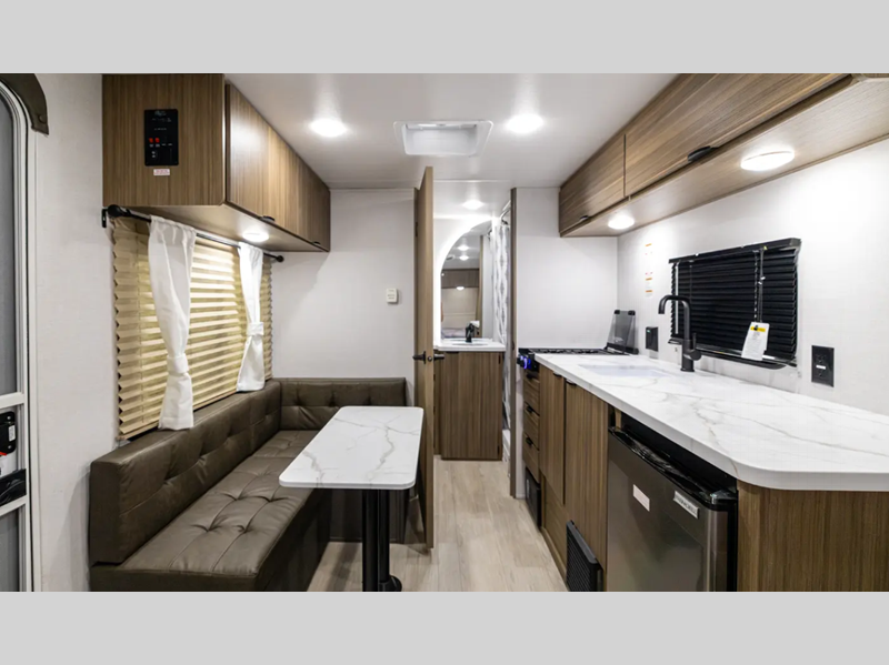 Sleeps 4 Slides 1 Length 22 ft 11 in Ext Width 7 ft 6 in Ext Height 10 ft 4 in Hitch Weight 555 lbs Dry Weight 4024 lbs Cargo Capacity 931 lbs Fresh Water Capacity 43 gals Grey Water Capacity 30 gals Black Water Capacity 30 gals Furnace BTU 20000 btu Available Beds Queen Refrigerator Type Frost Free 12V Refrigerator Size 11 cu ft Cooktop Burners 2 Shower Size 36" x 24" Number of Awnings 1 Water Heater Capacity 6 gal Water Heater Type Gas DSI AC BTU 13500 btu Awning Info 15' Power w/Adjustable Legs and LED Light Strip Axle Count 1 Shower Type Standard Electrical Service 30 amp Similar Floorplans