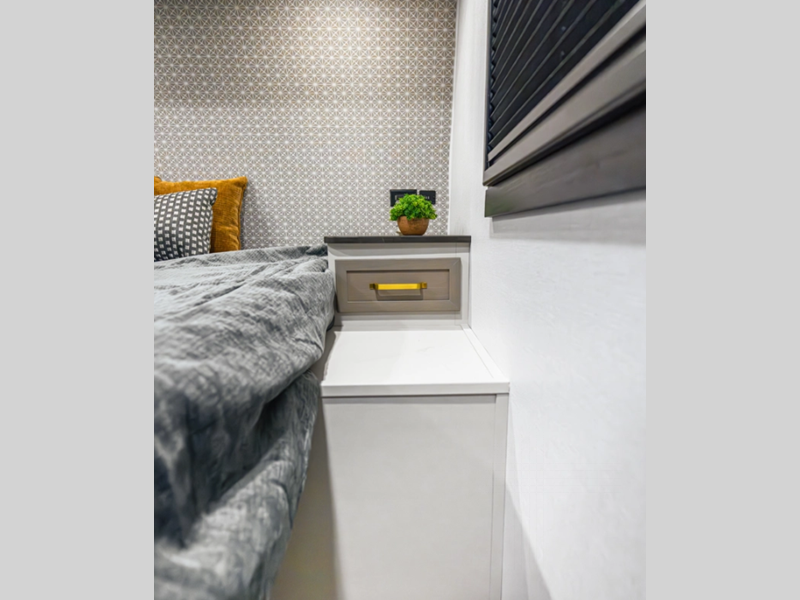 Sleeps 2 Slides 1 Length 24 ft Ext Width 8 ft Ext Height 10 ft 10 in Hitch Weight 785 lbs Dry Weight 5403 lbs Cargo Capacity 2382 lbs Fresh Water Capacity 49 gals Grey Water Capacity 62 gals Black Water Capacity 32 gals Tire Size 15" Available Beds Queen Refrigerator Type 12V Black Refrigerator Size 10 cu ft Cooktop Burners 3 Shower Size 30" x 36" Number of Awnings 1 Water Heater Type On Demand Tankless AC BTU 18000 btu TV Info LR 40" LED Smart TV Awning Info 14' w/LED Lights Axle Count 2 Shower Type Walk-In Shower Similar Floorplans