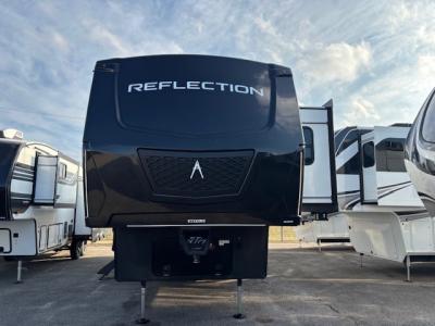 With any Reflection fifth wheel by Grand Design, you will have a solar panel for off-grid camping and a 60 amp charge controller and inverter prep, a Universal All-In-One docking station, unobstructed pass-through storage, and Goodyear Endurance tires. Each is constructed of gel coat exterior sidewalls, residential 5" truss rafters, walk-on roof decking, a fiberglass and radiant foil roof and front cap insulation plus laminated aluminum framed side walls, roof and end walls in slide rooms. Head inside to enjoy residential hardwood cabinet doors, premium Congoleum flooring, a spacious shower with a glass door, and many more comforts!