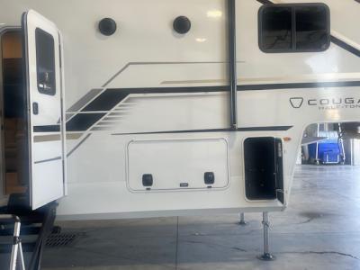 The Keystone Cougar Half-Ton fifth wheel and travel trailers are known as one of America's favorites for a reason! Some of those reasons are the exclusive features that come from Keystone, like the Winegard Air 360+ omni-directional rooftop antenna, the in-floor heating ducts, and the HyperCore composite wall construction with Vixen Fibrogloss high-gloss finish. The Cougar Half-Ton has a Climate Guard protection package with heat-deflecting white sidewalls, two roof attic vents, PEX plumbing and more to enjoy four season camping. Inside, you'll love the dimmable lighting, night roller shades throughout, shower skylight, and bedside USB outlets to keep your electronics charged.