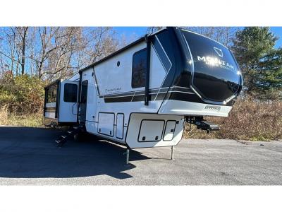 Sleeps 5 Slides 3 Length 37 ft 4 in Ext Height 13 ft 4 in Interior Color Arlington, Kingston Hitch Weight 2580 lbs Dry Weight 12217 lbs Cargo Capacity 4363 lbs Fresh Water Capacity 75 gals Grey Water Capacity 87 gals Black Water Capacity 48 gals Tire Size ST235/80R16G Furnace BTU 35000 btu Available Beds King Refrigerator Type GE Energy Star Residential with Ice Maker Refrigerator Size 18 cu ft Cooktop Burners 3 Shower Size 48" x 30" Number of Awnings 2 Axle Weight 7000 lbs LP Tank Capacity 30 lbs Water Heater Type On Demand AC BTU 15000 btu TV Info LR 50" LED Smart TV Awning Info 11' and 18' Electric with LED Lights Axle Count 2 Washer/Dryer Available Yes Number of LP Tanks 2 Shower Type Shower w/Seat Electrical Service 50 amp Similar Fifth Wheel Floorplans