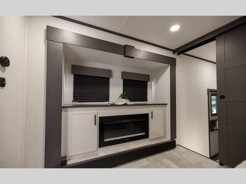 Each luxurious model features real wood cabinet doors, heat rated solid surface countertops throughout, blackout roller shades, and a king-size bed to provide the highest level of owner satisfaction. These fifth wheels also include an electric awning with LED lights outside, as well one-touch auto leveling, doggy d-ring, and a labeled universal docking center to have you set up to camp in no-time!