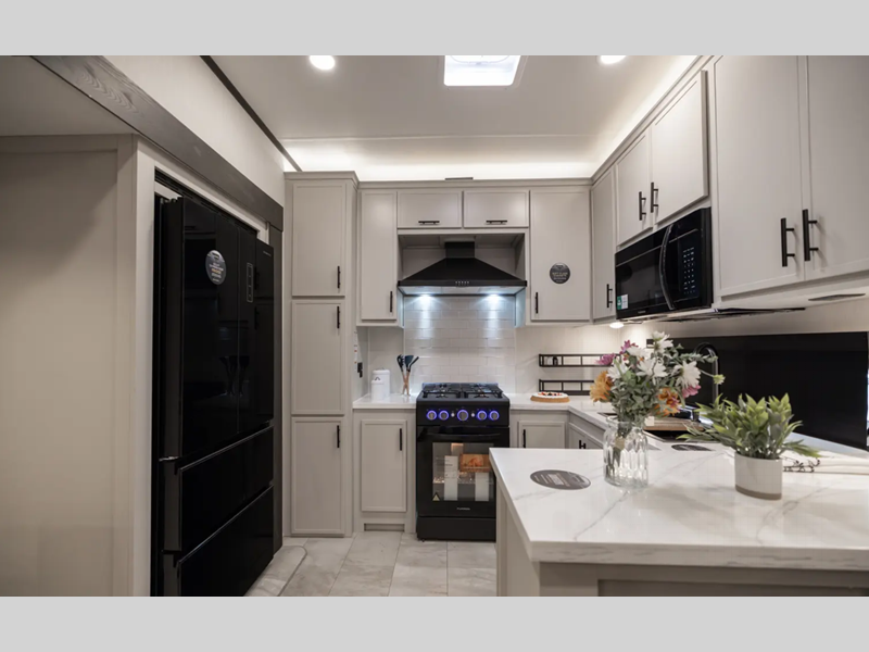 - Heat Rated Solid Surface Countertops Throughout the Coach