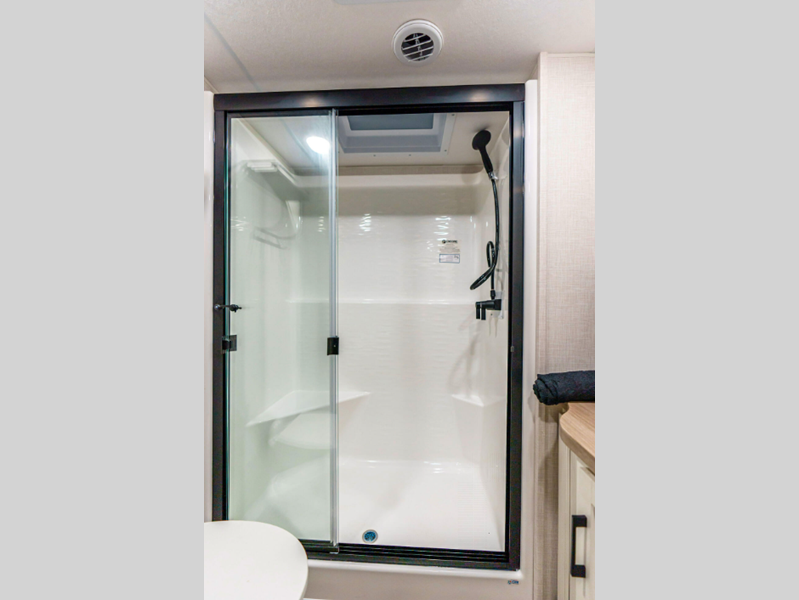 A PVC roof membrane covers protects the top of these units and a heated and enclosed underbelly protects the bottom. The RV airflow A/C system increases the 15,000 BTU air flow by an average of 40% for an improved performance, faster cooling time, and reduction of noise. You will also appreciate the 200W solar panel for off-grid capabilities, and the leveling system will have you set up at camp in no-time!