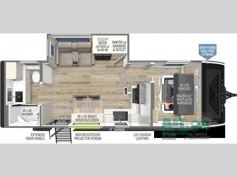 A & L RV Sales is not responsible for any misprints, typos, or errors found in our website pages. Any price listed excludes sales tax, registration tags, $999 Doc, and delivery. Manufacturer pictures, specifications, and features may be used in place of actual units on our lot. Please contact us at any of our 8 locations for availability as our inventory changes rapidly. All calculated payments are an estimate only and do not constitute a commitment that financing or a specific interest rate or term is available. Estimated payments are based on 15% down and 8.99% interest for new units and 9.99% interest for pre-owned units. Calculated payments do not include tax, tags, and title.