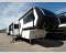 You're going to love every minute spent in this spacious fifth wheel that can sleep four. There is an inviting rear living area with a 72" tri-fold sofa and theater seating across from the televator and fireplace. The chef of your group can whip up dinner on the three burner cooktop or in the 30" residential microwave, and there is a 16 cu. ft. refrigerator that even opens when with the slide out is in. You will also enjoy the kitchen island with a farmhouse sink and roller cover, dual trash bins with a Stow N' Go paper towel holder, plus convenient dog bowls for your furry friends. You can store all your paper goods and snacks in the 84" pantry with adjustable shelving, and there is a hutch for nice dishes plus shoe storage in this model as well. Head to the front master bedroom where you'll find a queen bed with a TV, a large slide out with a wardrobe with drawers, plus a spacious bath.