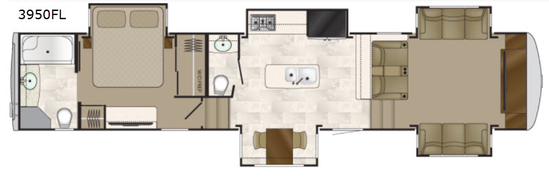 When you are ready for a change from the hustle and bustle of life, then come choose to camp with this five slide out Bighorn 3950FL luxury fifth wheel! From the minute you enter this model you will be impressed with the comforts from the front entertainment center and living area with two sofas to the theater seating. The kitchen has an island with a double sink and extra counter space. Located off of the kitchen there is a convenient half bathroom. The master bathroom in the rear is spacious and makes it easy to get ready for the day. Start your next vacation off right with this fifth wheel!